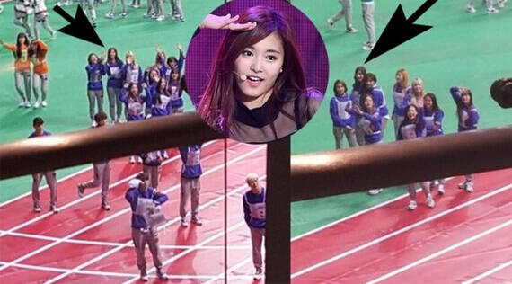 图为周子瑜现身节目录像,全场观众为她加油打气,而她与团员们也开心挥手回应。