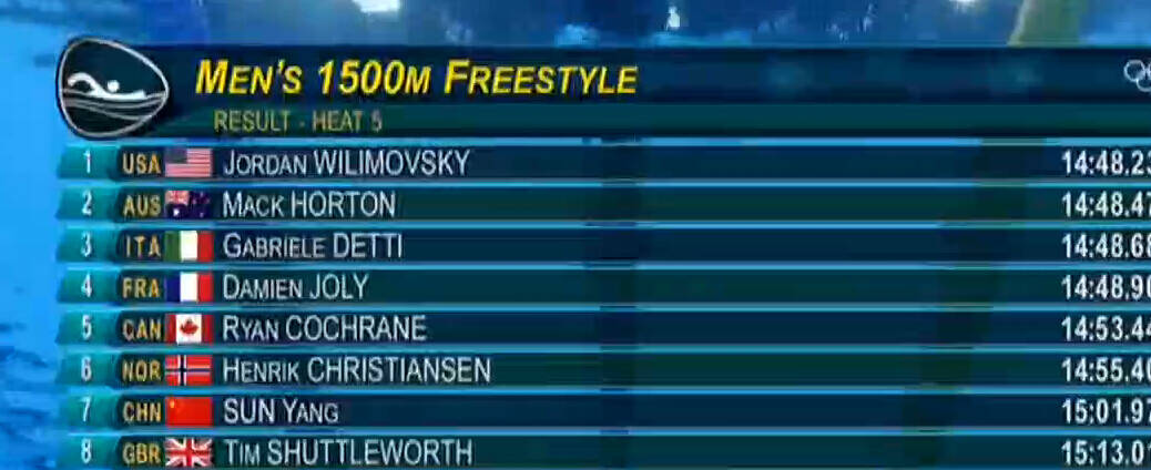 孙杨最终位列小组第7