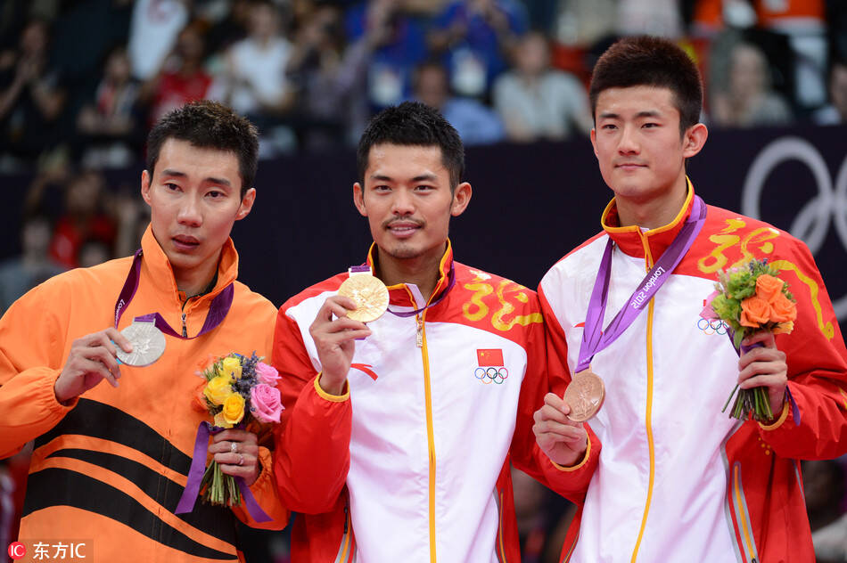 当地时间2012年8月5日,伦敦奥运会羽毛球男单决赛,林丹夺冠,李宗伟屈居亚军,谌龙获铜牌。