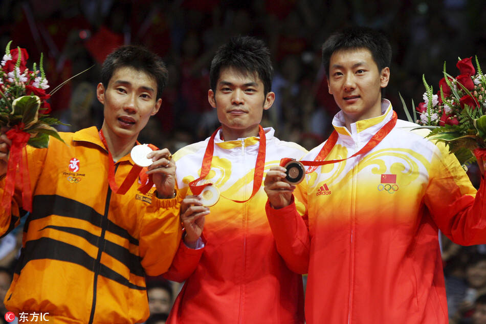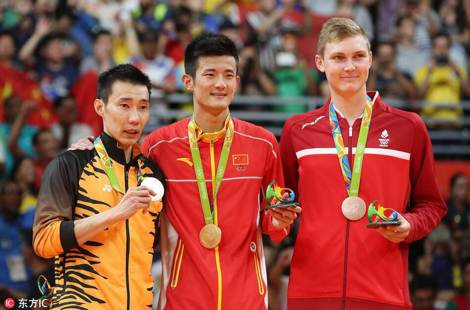 当地时间2016年8月20日,巴西里约热内卢,2016里约奥运会羽毛球男单决赛颁奖,谌龙夺金。