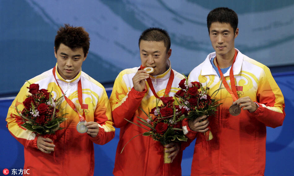 2008年奥运会上,中国乒乓球队包揽了男女单打的冠亚季军。
