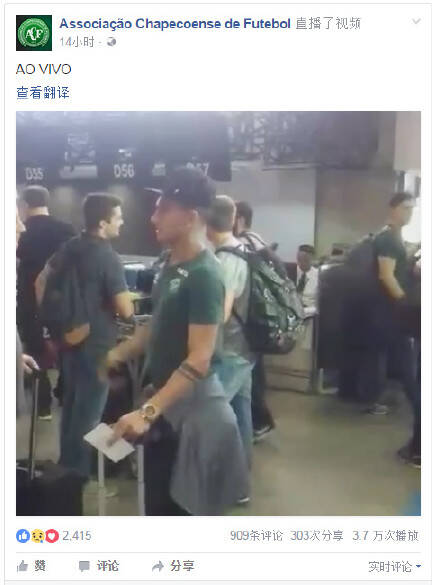 北京时间11月29日消息,据法新社报道称,一架载有巴西足球队员的飞机在哥伦比亚坠毁,机上载有81人。据悉,飞机上为巴西甲级联赛的沙佩科恩斯队的队员。