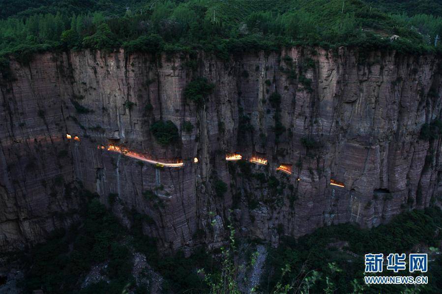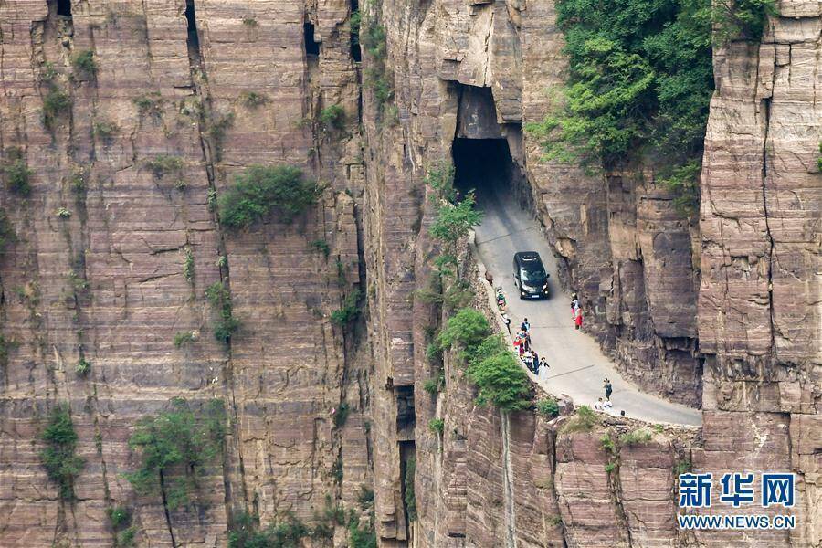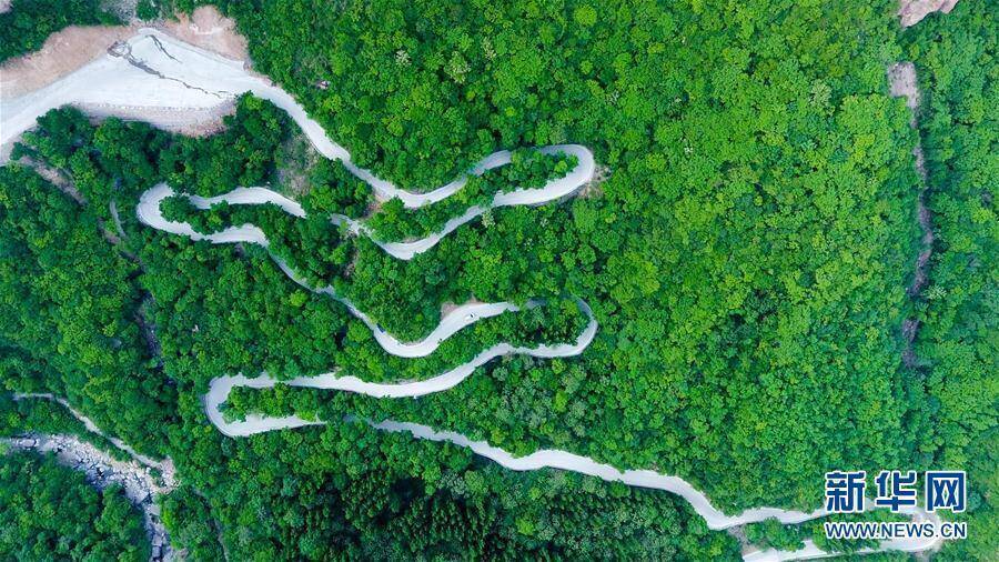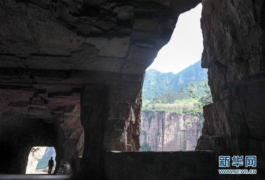 这是连接郭亮村绝壁公路和大山之外的盘山公路(5月16日摄)。河南省辉县市郭亮村位于太行山腹地一面高约300米的垂直悬崖上,长约2000多米的巨大悬崖,像一道屏障,隔开了村庄与外界的联系。四十年前,郭亮村的村民再也不能忍受交通困难带来的贫困。1972年开始,村民们用自已的双手和钢钎铁锤等简易工具,用5年多的时间在峡谷绝壁中凿出了一条长达1250米的绝壁公路,艰难地打开了与外界的通道。与凿壁引水的红旗渠一样,凿壁开路的绝壁公路,不仅成为艰苦环境中的工程奇迹,更是艰苦奋斗改变落后面貌的一处精神高地。今天,凿壁开路创造出的景观奇迹和艰苦奋斗的精神力量,使郭亮村成为太行山中的红色旅游胜地。绝壁公路使藏在深山的自然奇景展露于世。当地用石板建成的村落和民风民俗,吸引着艺术家们前来创作,郭亮村已成为全国电影、绘画创作基地,形成了新兴的文化产业,实现了向服务业转型的产业升级。一条绝壁公路,改变了一个村庄的命运,四十年来不断促进着郭亮村的经济发展和村民生活改善,使一个极端贫困的村庄,成为脱贫致富的小康村。