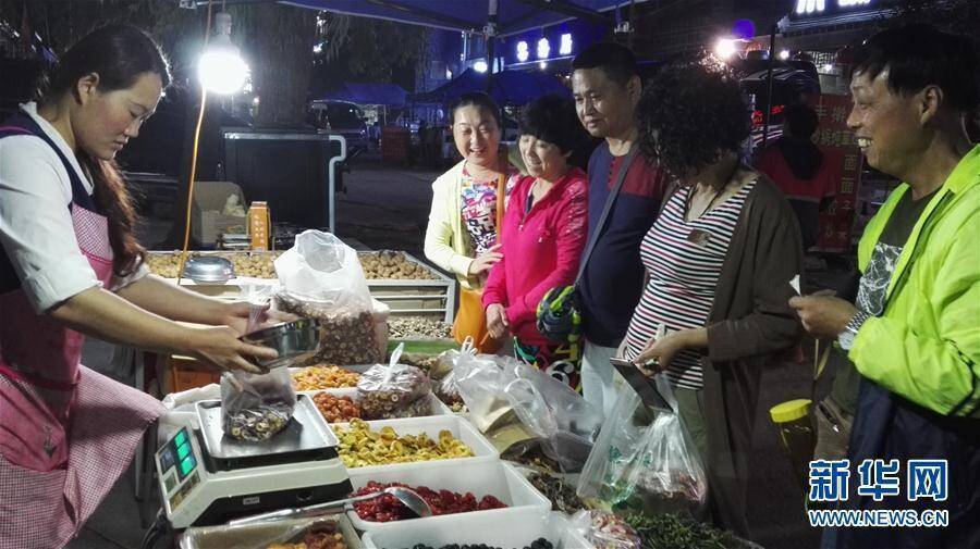 游客在河南省辉县市郭亮村的夜市上购买当地特产(5月16日摄)。新华社记者 张凤国 摄
