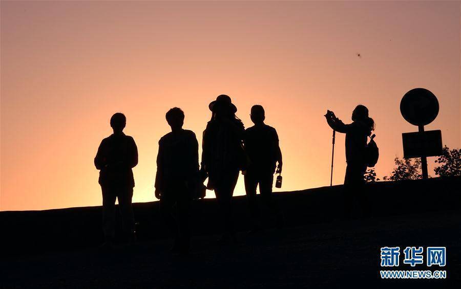 游客在郭亮村观景平台观看日出(5月17日摄)。新华社记者 朱祥 摄