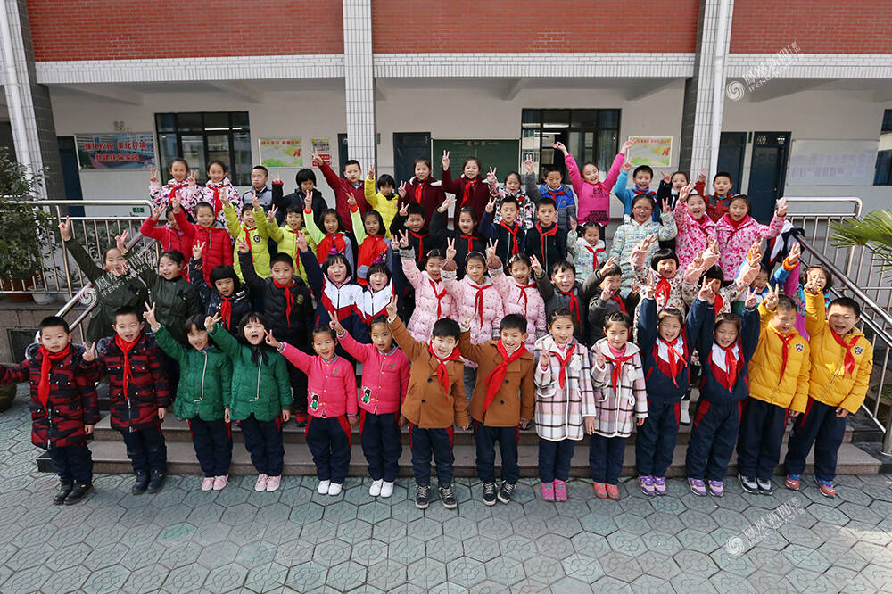 2017年2月23日,湖北省十堰市,五堰小学的28对多胞胎同框出境,老师笑称看镜头里的孩子们就像在玩“连连看”。摄影:奇志