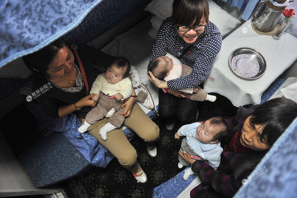 2011年4月14日,河南农民毛奎饶和妻子李倩带着三胞胎踏上返乡之旅。2010年因妻子被诊断为“高危产妇”,河南农民毛奎饶带妻子李倩进京求医,11月30日,毛奎饶和李倩的四胞胎女儿出生,但老三在2011年4月不不幸夭折。摄影:张沫