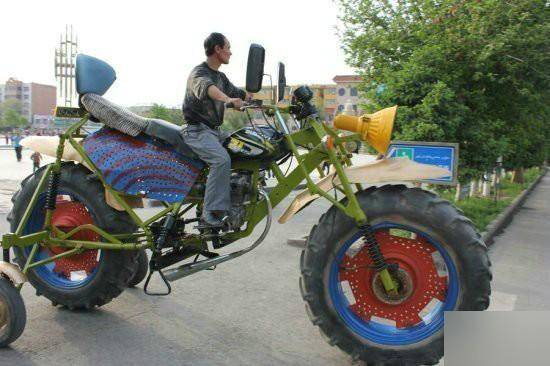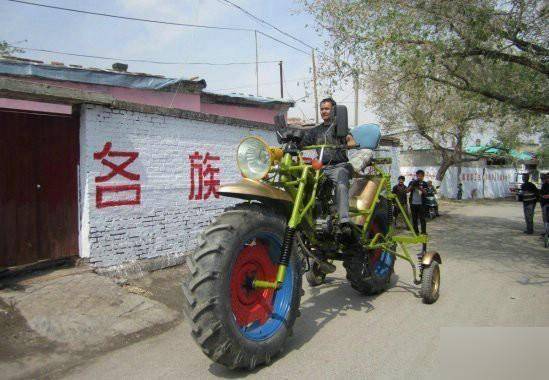 维族小伙造出巨型摩托 30岁的维吾尔族小伙Abulajo是污水处理厂工人,他用了一年时间造出了这个300公斤重的巨型摩托车。