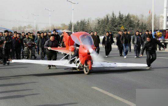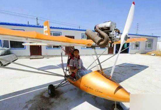 2012年11月29日,张学林拉着这架总长3.4米,重470多斤的“飞机”准备试飞。 张学林是个农民,他早年辍学,这架自制“山寨”飞机成本是2000元。