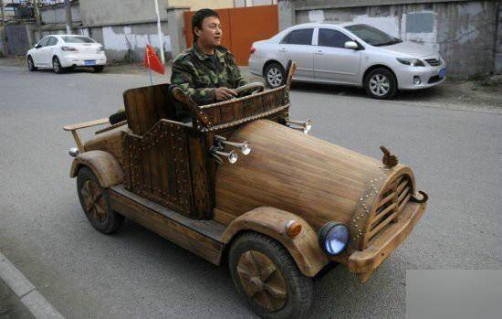 2014年10月29日,辽宁省沈阳市大东区48岁的刘福龙自制了一辆长1.6米、宽1.2米,重量达200多公斤的木质电动轿车。 据悉,此车充电一次可连续行驶20公里,最高时速达每小时30公里。