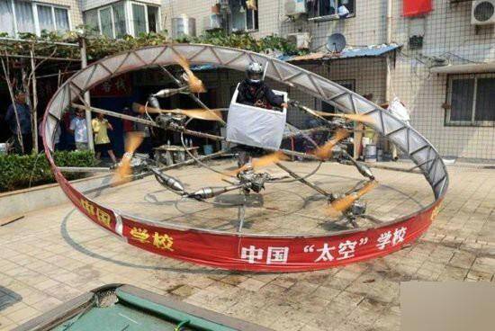 来自湖北武汉的一位中国农民舒满胜成功让一艘自制飞碟飞起。 这艘直径4米的飞碟是由8台发动机驱动,在测试飞行中舒满胜成功让它在2米高度飞行了超过30秒。这艘飞碟的造价超过3000元,这也是舒满胜组装的第五艘飞碟。
