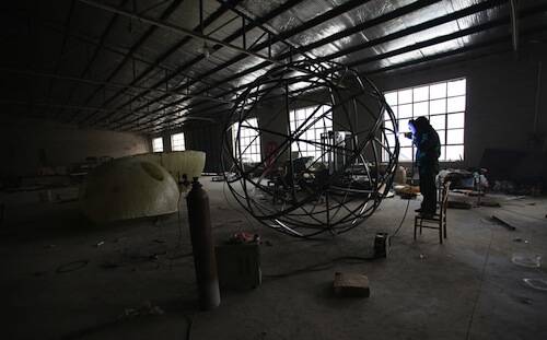 2012年12月12日,河北省香河县,刘起元正在焊接“诺亚方舟”雏形。