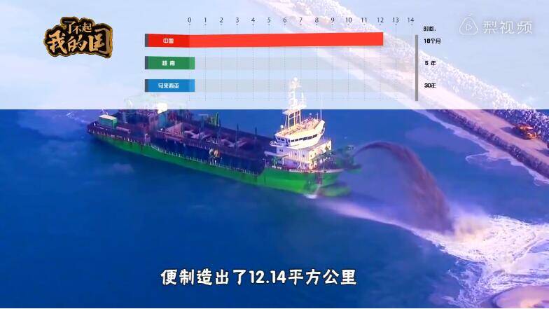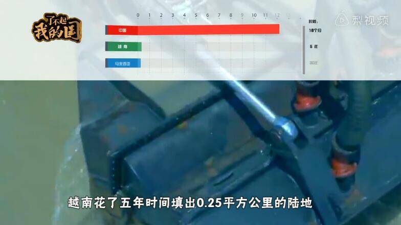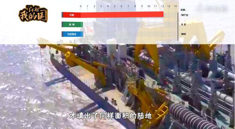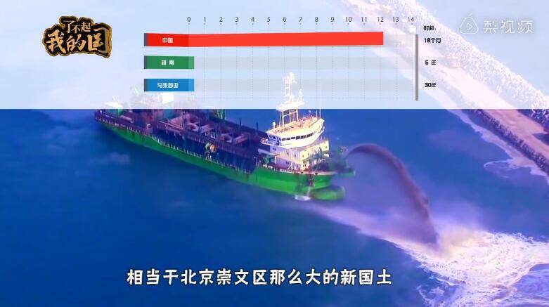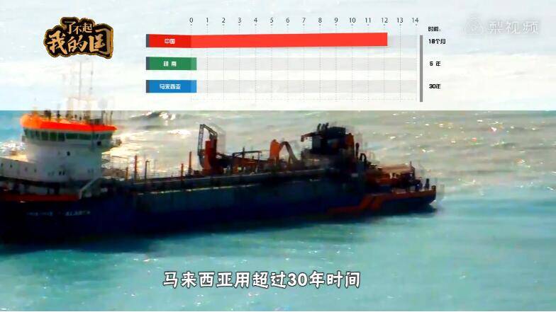 越南用五年填出0.25平方公里陆地 ,而中国出动天鲸号和其他几十艘挖泥船,短短18个月便制造出12.14平方公里的新国土。