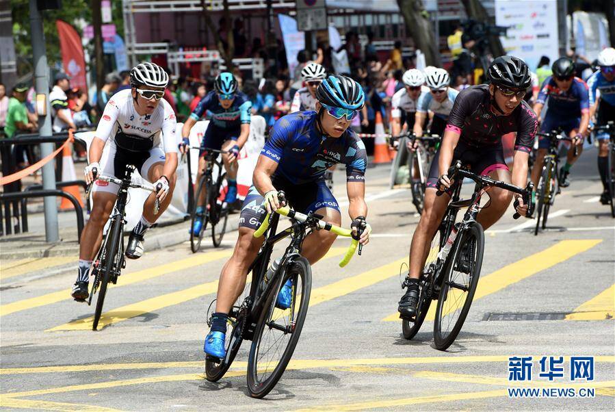 10月8日,参赛选手在男子绕圈赛中角逐。当日,香港自行车节在尖沙咀举行,其比赛有30和50公里公路赛、家庭自行车赛、青少年自行车赛、男女公路绕圈赛等。 新华社记者卢炳辉摄