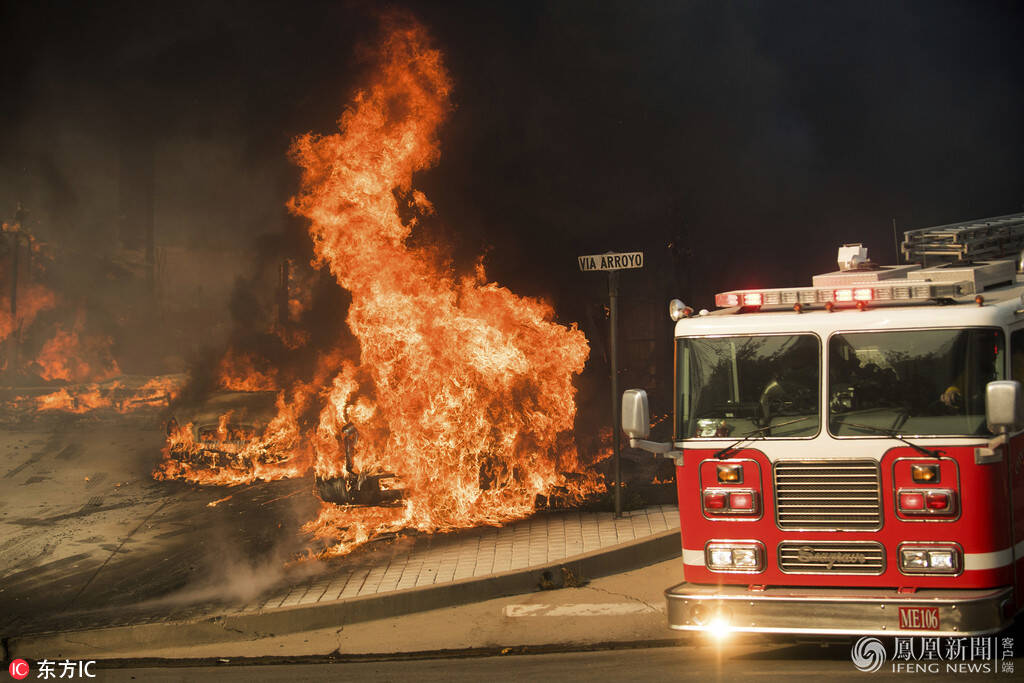 在此之前,南加州已经爆发了多场火灾。其中影响文图拉县的“托马斯”山火已经影响了超过6.5万英亩的土地,摧毁至少150座建筑并威胁其他1.2万座建筑。