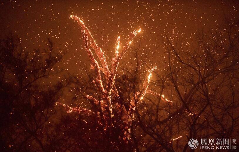 火星窜上一棵树,如同盛开的烟花。近几个月以来,美国加州地区频频遭受野火灾害。今年10月,加州北部纳帕市和索诺玛县发生的一系列火灾成为该州历史上最致命的大火。当地专家当时曾表示,加州政府至少需要数年的时间来恢复。