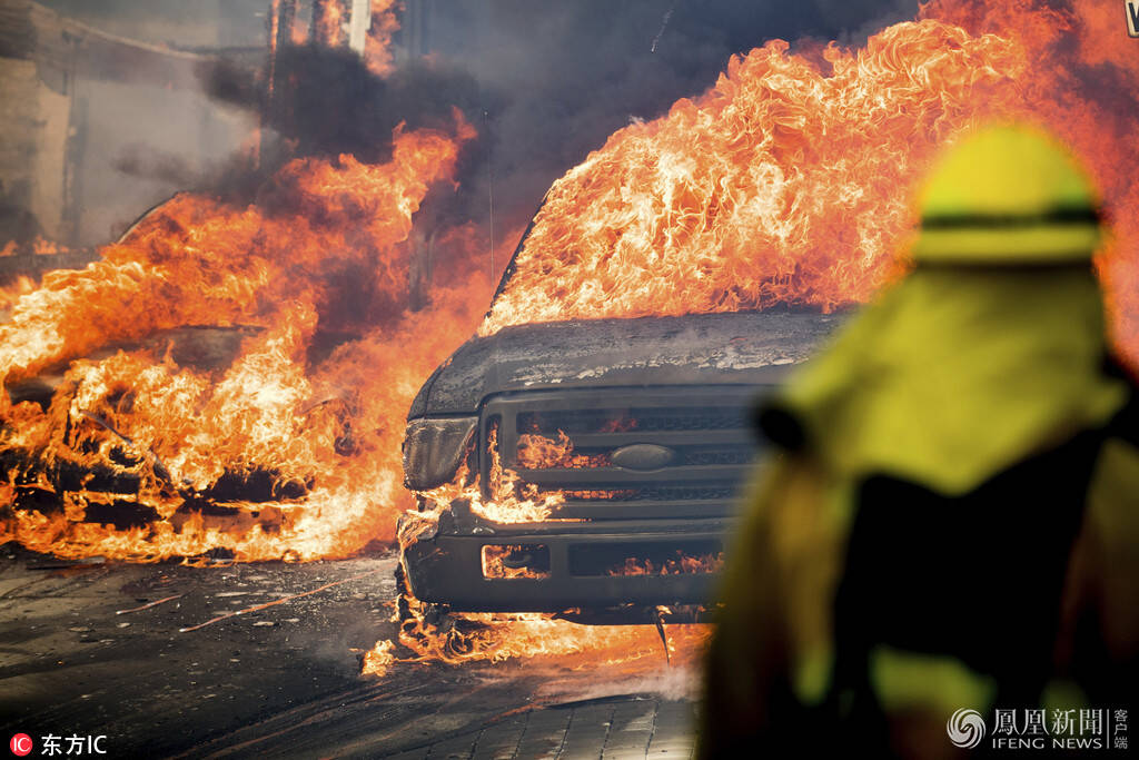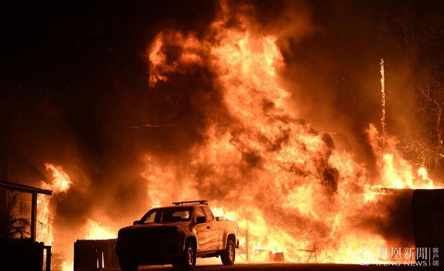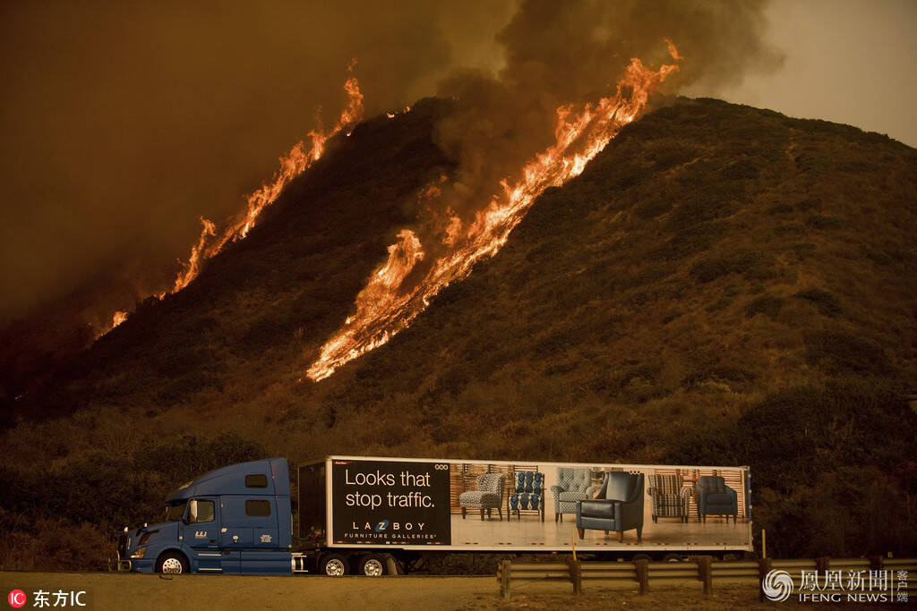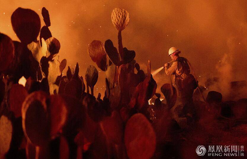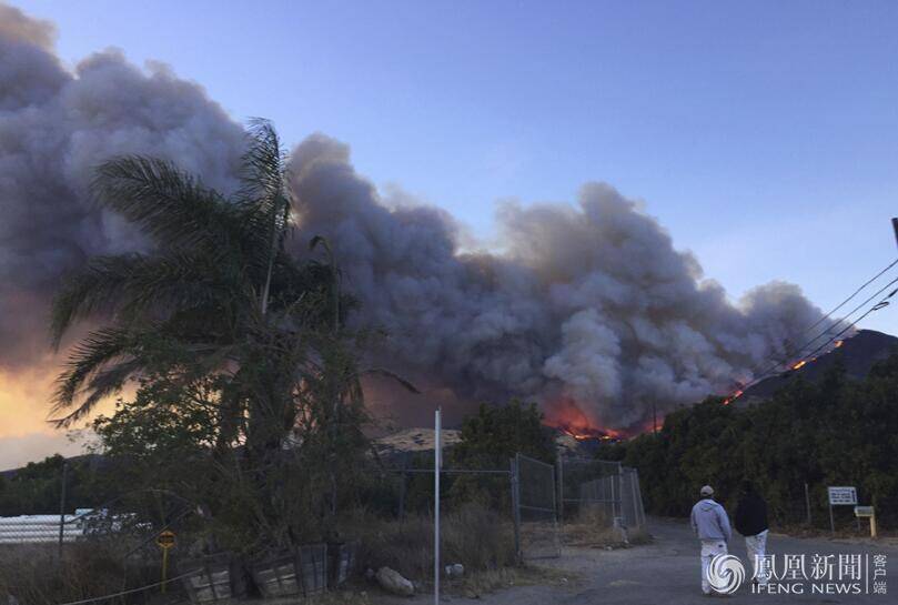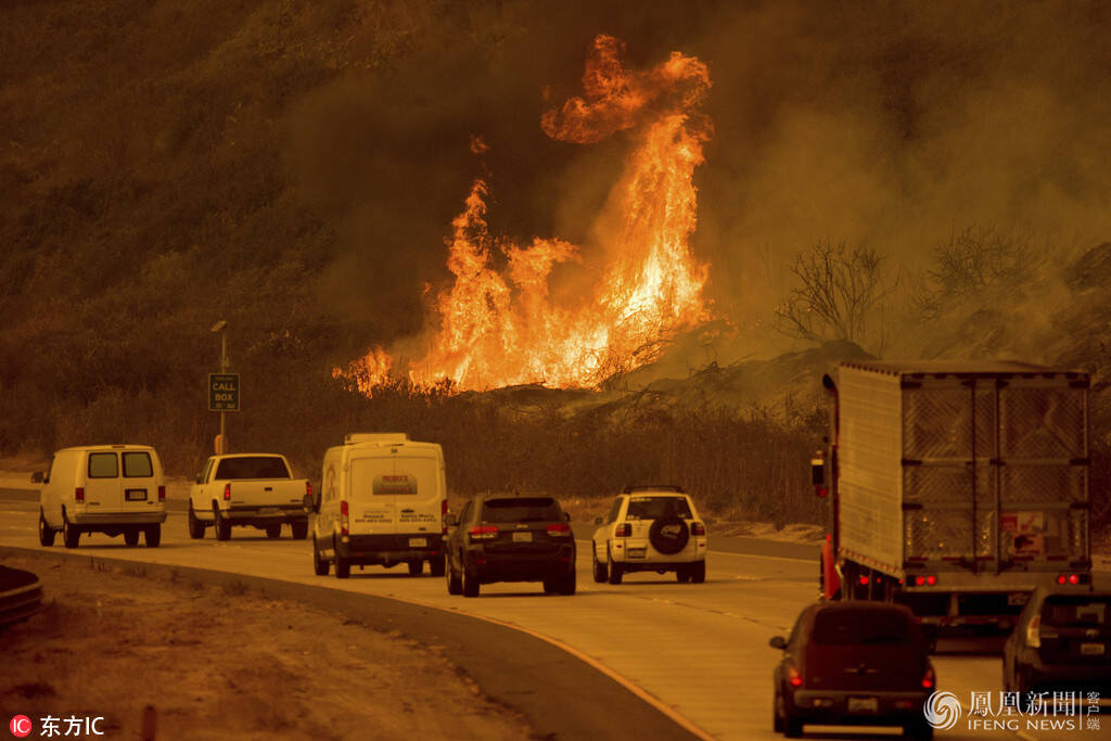 远处看去,现场犹如火山爆发。据悉,南加州超过华氏100度(约合37.8摄氏度)的高温和阵阵焚风,创造了有利火势延烧的条件,使得该地区面临野火迅速蔓延的威胁。
