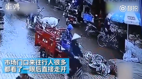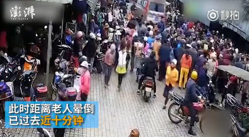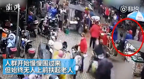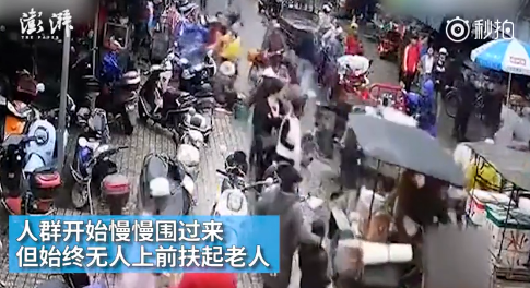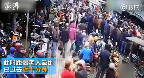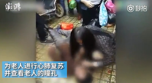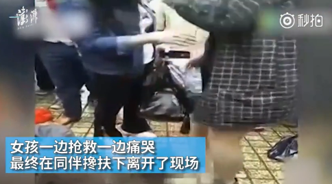 监控显示,近五分钟内无人上前救助。随后一名过路女孩对老人做急救,但已无力回天。女孩边抢救边痛哭,随后被同伴搀扶离开现场。