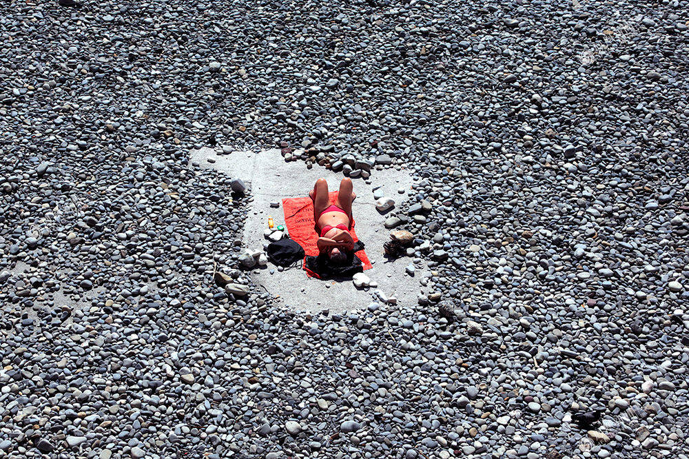 2015年3月31日,法国尼斯,一个女子躺在海滩上晒太阳。REUTERS/Eric Gaillard
