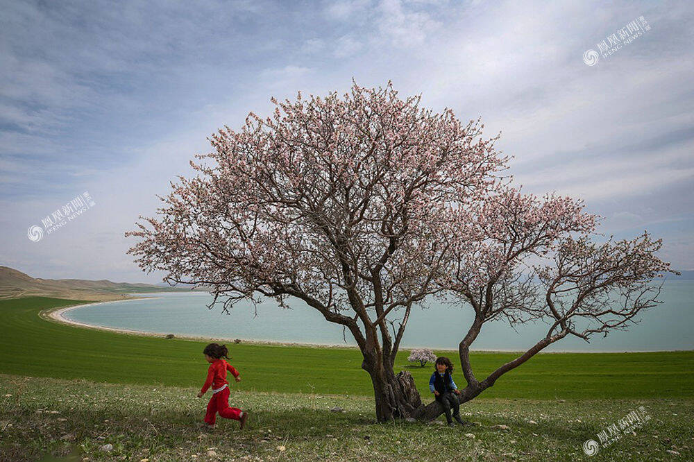 2018年4月4日,土耳其凡城,孩子在凡湖边玩耍。Anadolu Agency/视觉中国