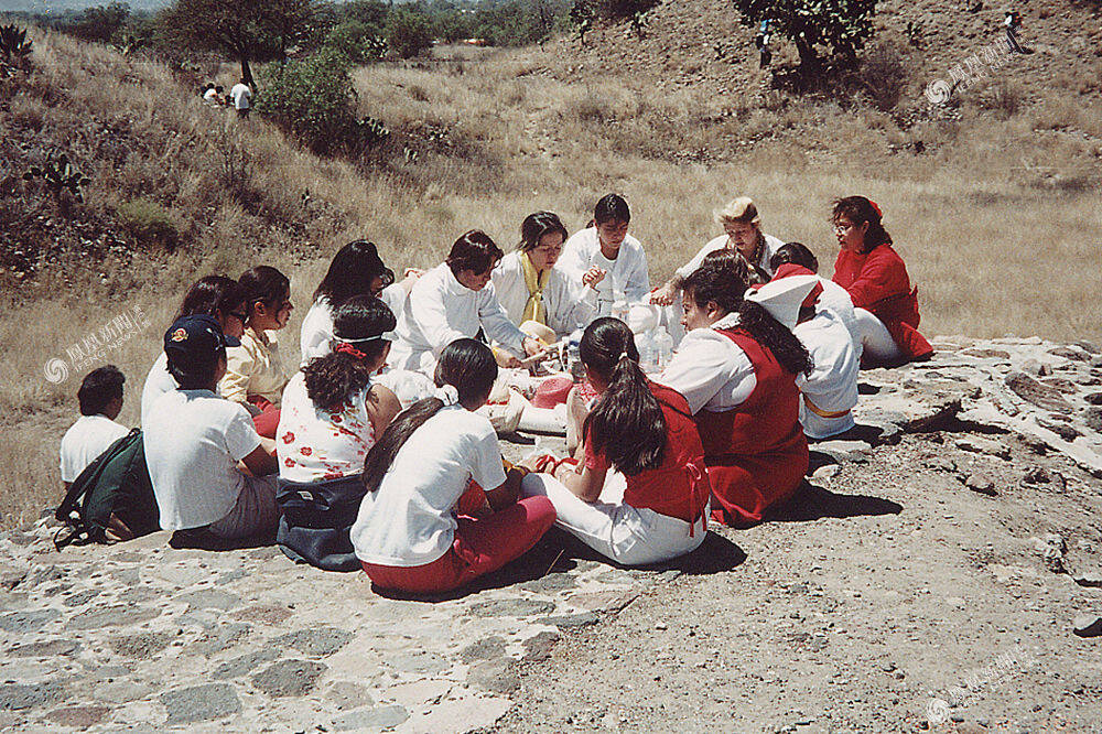 墨西哥,女人们在奇琴伊察玛雅城邦遗址祈祷,纪念春天第一天。Felix Modestin Jr./摄