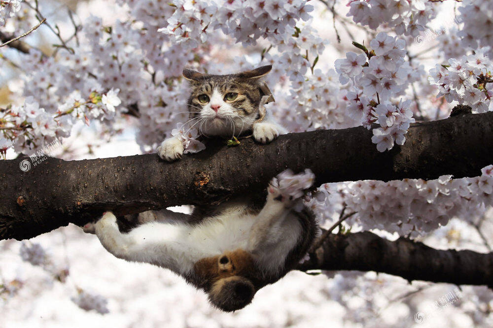 2011年4月7日,日本东京,树上不仅长樱花,还“长”了猫。