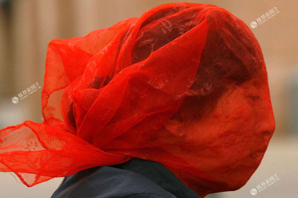 2007年5月7日,辽宁,一个女人戴着头巾骑摩托抵御沙尘。