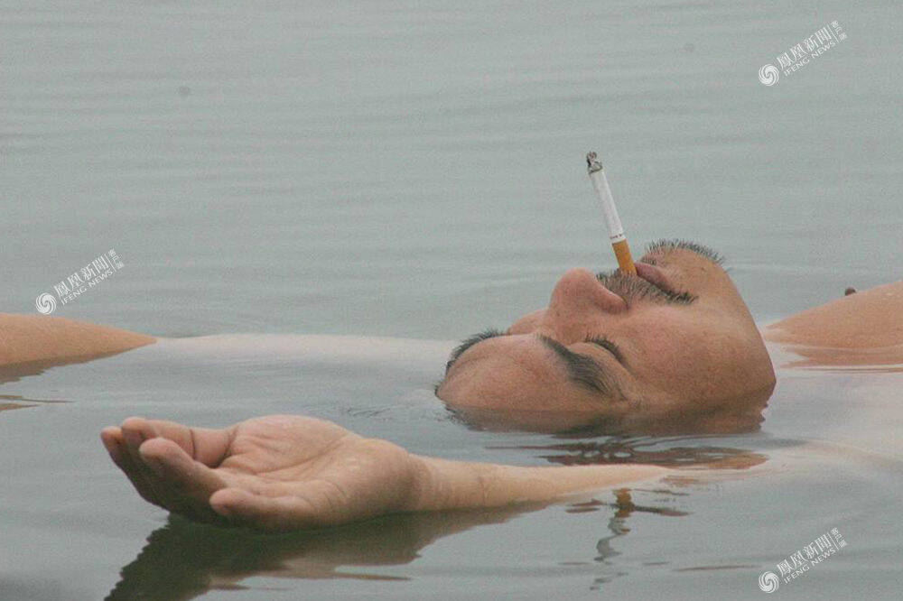 2006年3月1日,长沙春泳者仰卧水面吸烟。王益群/视觉中国