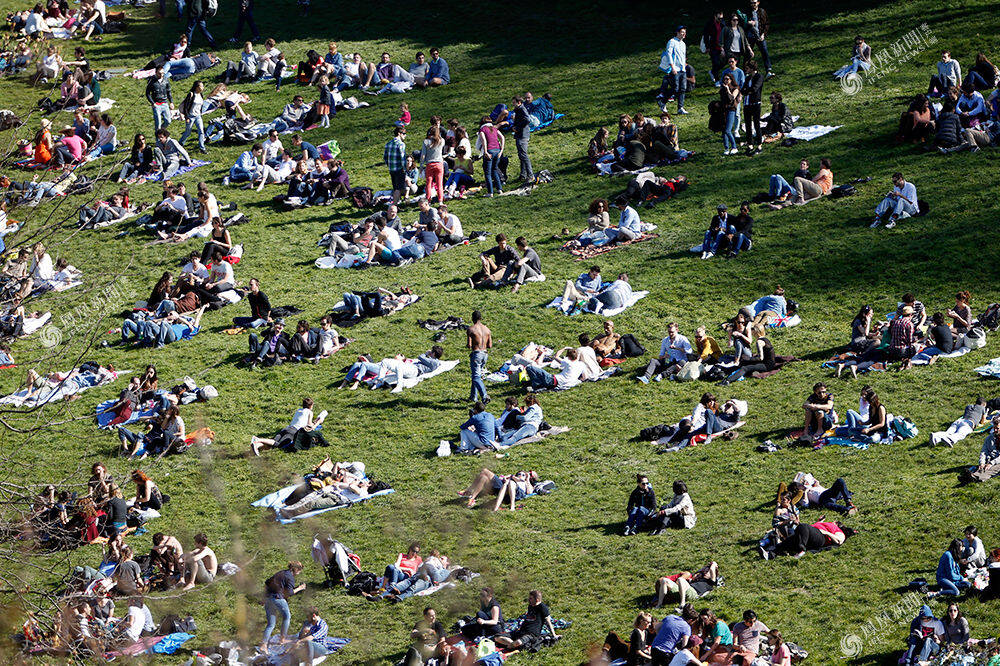 2014年3月16日,法国巴黎,天一暖和,草地上就满了。REUTERS/Charles Platiau