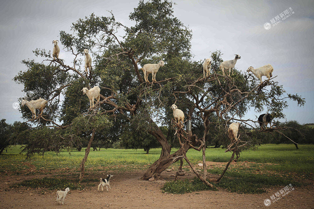 4月4日,摩洛哥索维拉,山羊爬到阿甘树上觅食坚果。