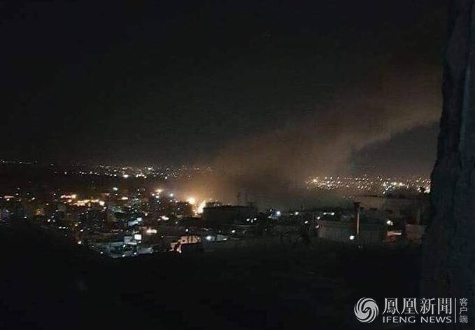 空袭夜晚被拦截的战斧导弹残骸。