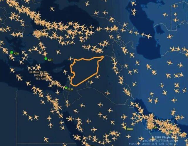 记者12日从实时跟踪飞行软件上看到,叙利亚上空果然净空一片!