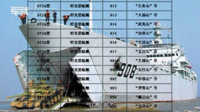 另外船坞登陆舰、坦克登陆舰均以山来命名,比如海军目前现役的四艘071型船坞登陆舰,都用中国的著名大山来命名,训练舰则用人名来命名,比如戚继光号综合训练舰,世昌号多功能训练舰,都以古代著名将领命名。