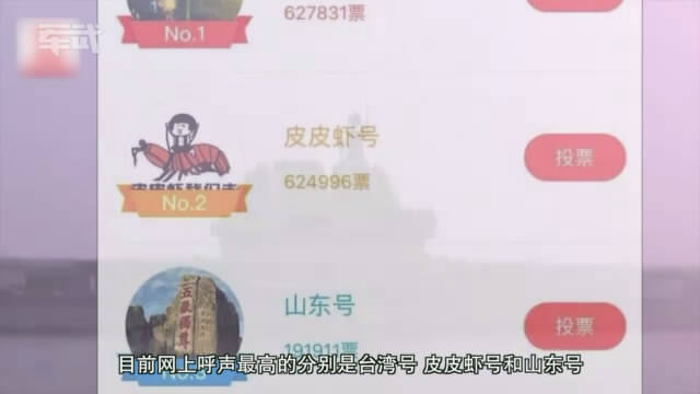目前网上呼声最高的是山东号和台湾号,而此前有人大代表建议以三国时期登陆台湾的东吴将领卫温为名,甚至还有人提议叫皮皮虾号。