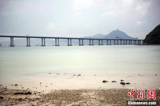 记者在香港大澳拍摄到的港珠澳大桥香港段。