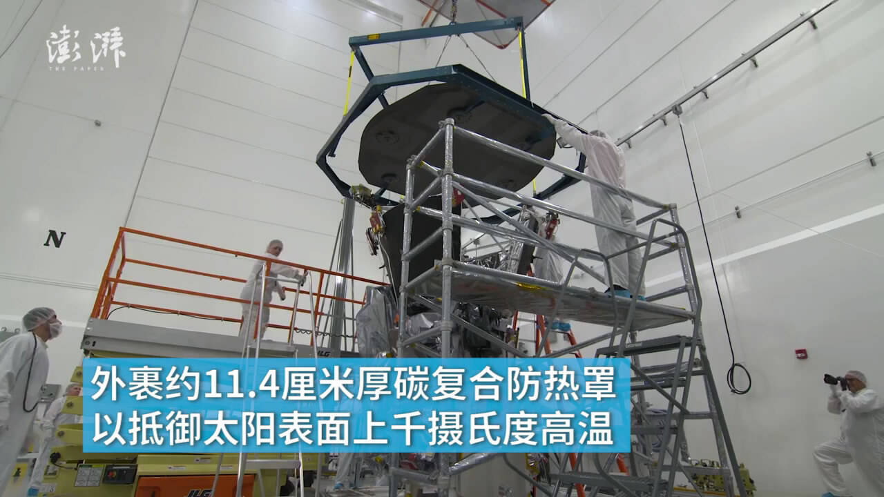 美国宇航局公布了这个开创性任务的发射日期,并且公开了为探测器提供防热保护的全新防护罩照片,2.43米直径的热防护罩重量只有大约160磅(约72.5公斤)。