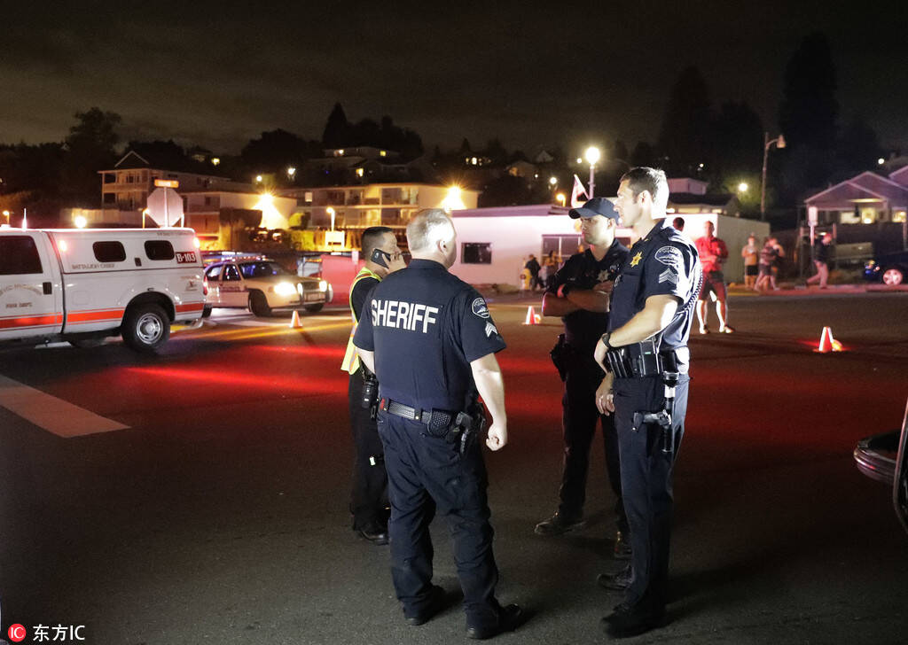 8月11日报道,当地时间8月10日,美国华盛顿州西塔科,警方在西雅图-塔科马国际机场。来源:Ted S Warren/东方IC