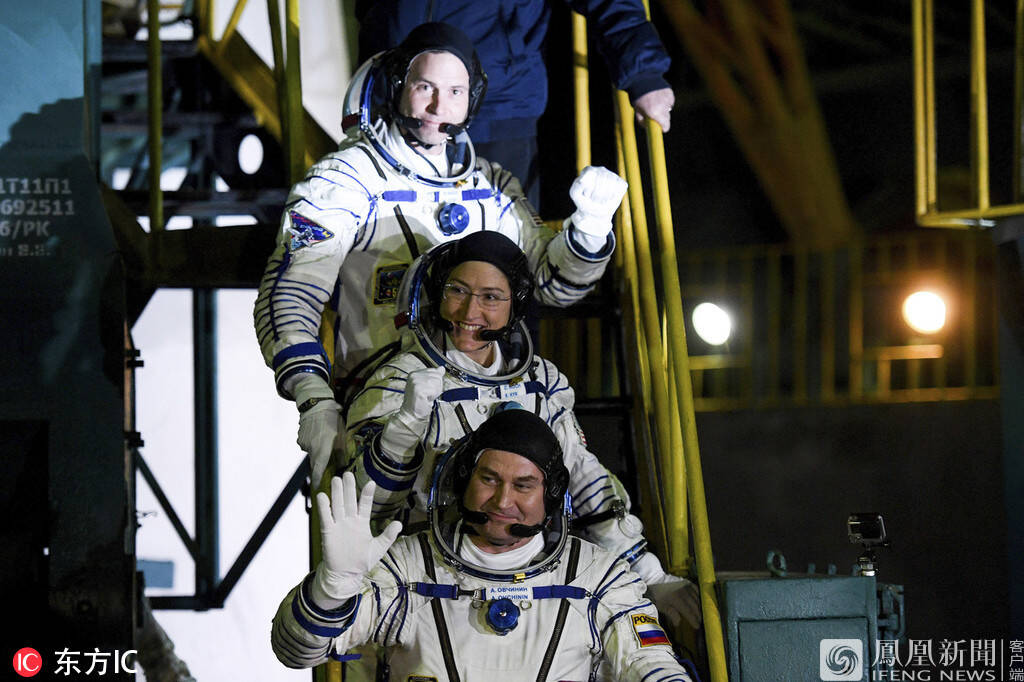 此次搭乘飞船前往国际空间站的是俄罗斯宇航员阿列克谢·奥夫奇宁以及美国宇航员尼克·黑格和克里斯蒂娜·科赫。他们计划在空间站值守204天,其间将开展医学、生物学等领域的59项实验和太空行走等活动。图为“联盟MS-12”飞船上的三名宇航员。