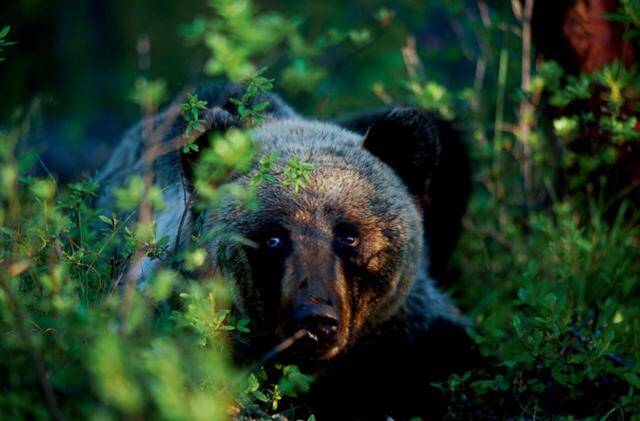 在森林中常常会出没的灰熊,它会与泰松他们对视。
