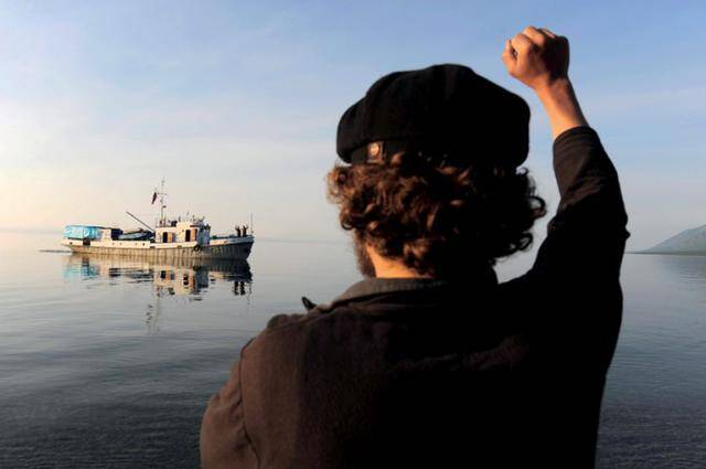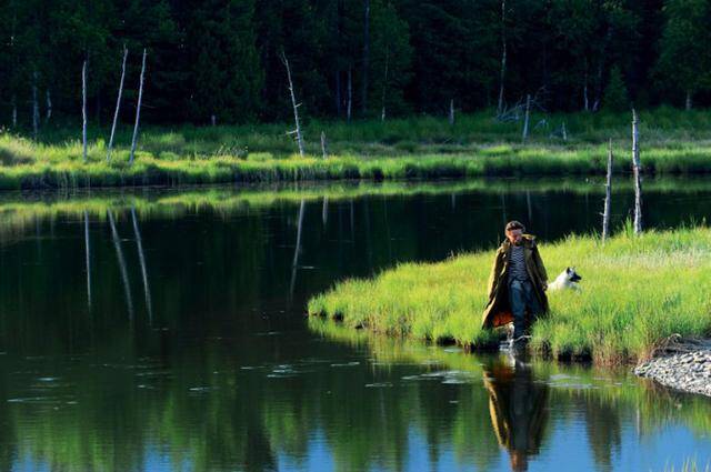 泰松与将他送到这片海岸的防护巡逻员萨普洛夫在湖水上坐着小船驶向远方。