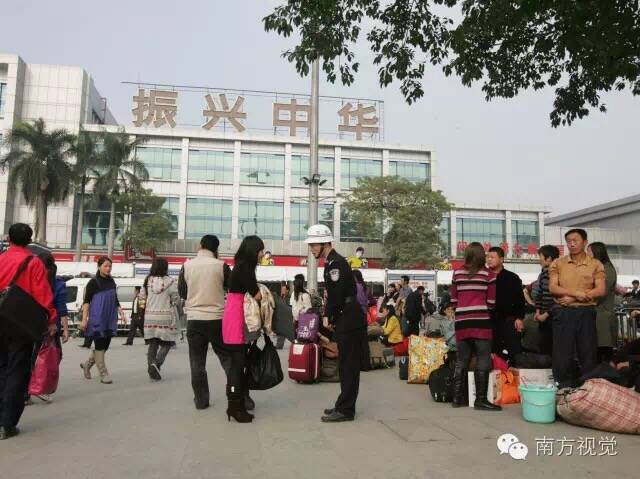 图为广州火车站如今不再藏污纳垢,丑恶被清扫一空,尽管每年还是会迎来春运送客流高峰,但火车站广场不再有盲流、吸毒者。