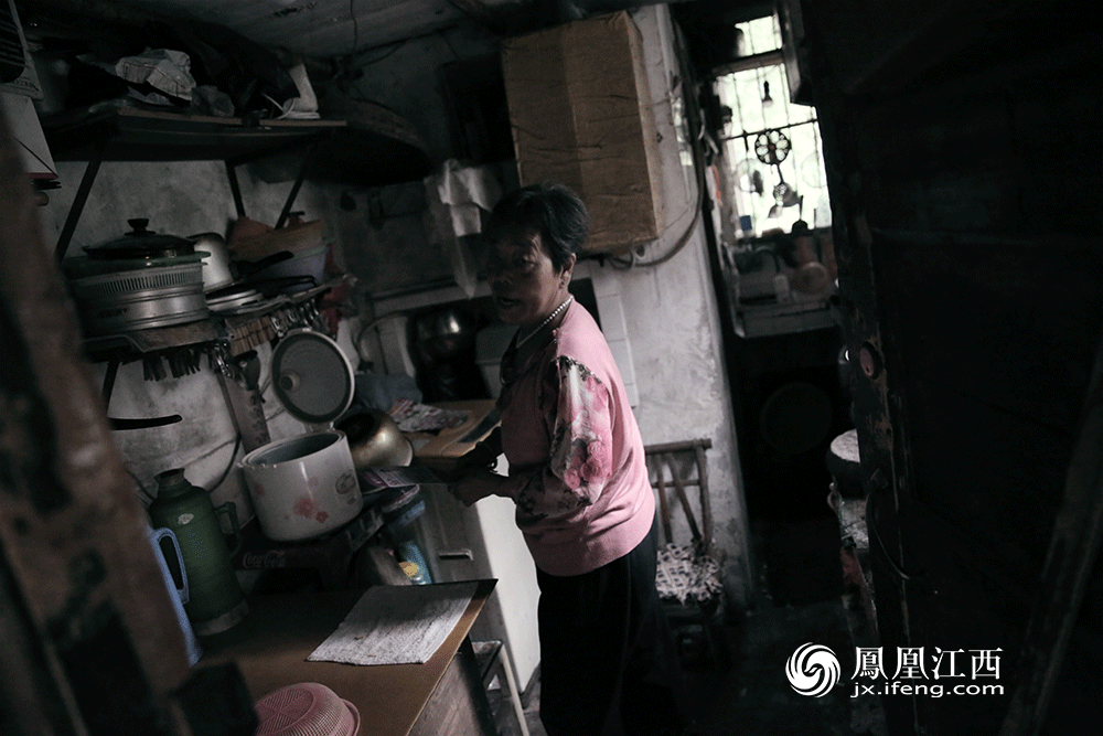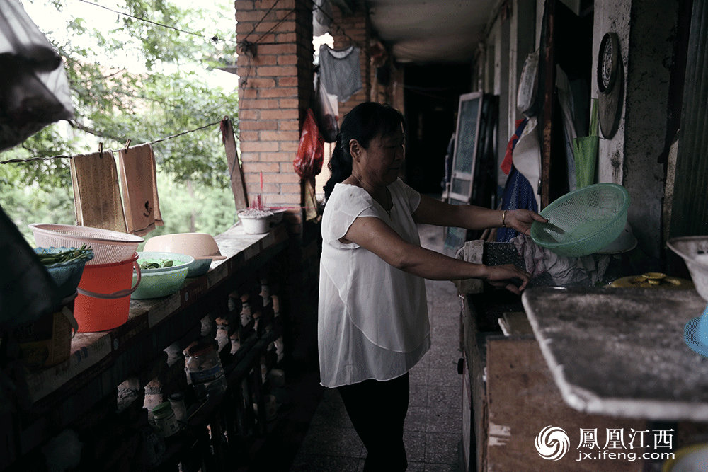 今年六十多岁的李阿姨一边站在走廊上做饭,一边告诉凤见摄影师:“这里之前都是给厂里单身的职工居住的,后来厂里住房紧张,像我这样的住房困难户就搬到了这里。因为单身宿舍没有厨房,所以我们只能在走廊上做饭。