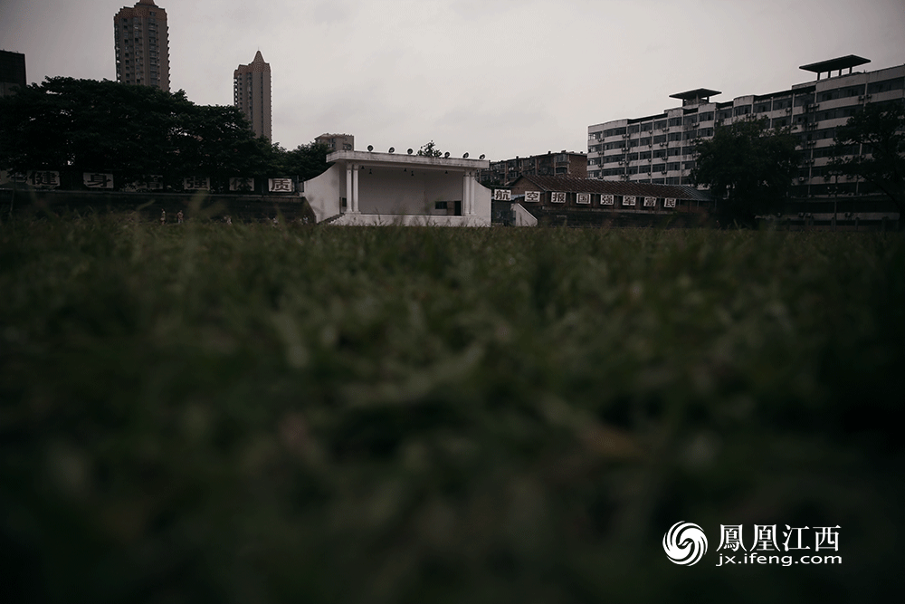 走在洪都大院老区里,仿佛时光穿越一般回到了五六十年代。在苏式的国企大院里,体育场是必备配套设施,现在还保留的标语和主席台让人仿佛看到这里当年的风貌。