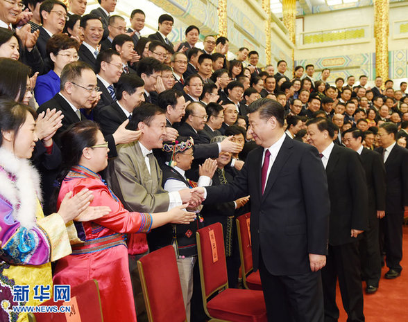 11月7日,党和国家领导人习近平、刘云山等在北京人民大会堂会见中华全国新闻工作者协会第九届理事会全体代表和中国新闻奖、长江韬奋奖获奖者代表。新华社记者李学仁摄