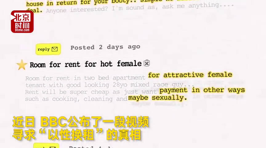 随着媒体调查的深入,BBC记者发现,大量类似“以性代租”(sex-for-rent)的广告公然刊登在Craigslist和Locanto这样的分类网站和其他租房网站上。