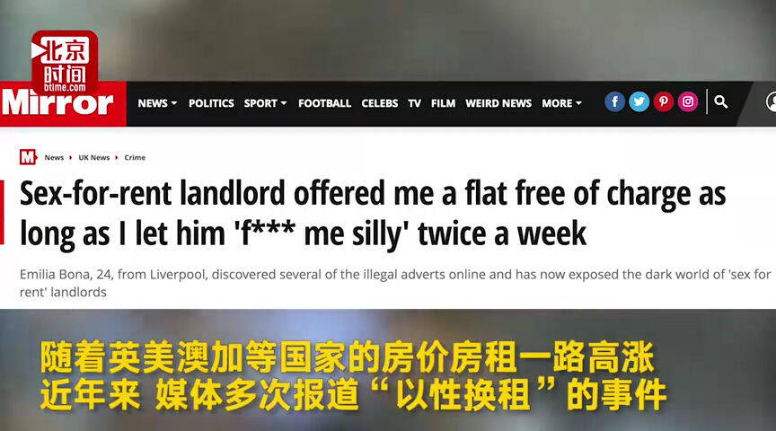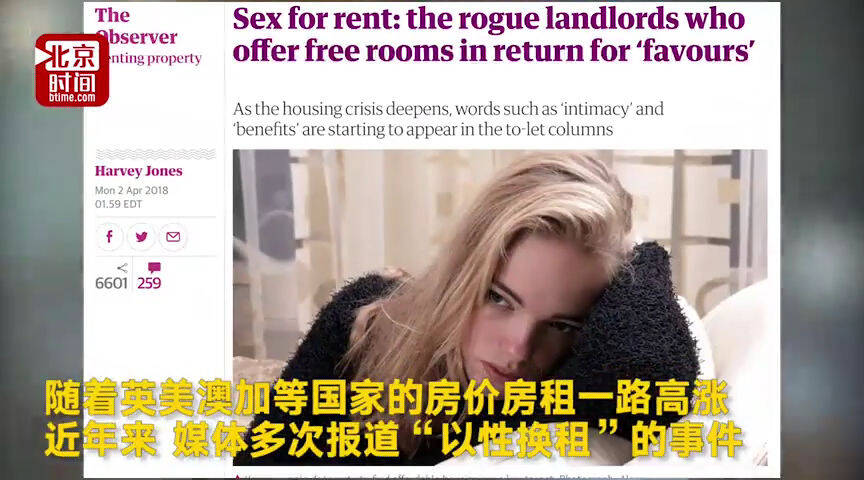 正在中国读者们为此诧异和不解之时,事实上,随着英、美、澳、加等国家的房价、房租一路高涨,近几年来有关“以性换租”的报道也多次见诸于媒体报道。