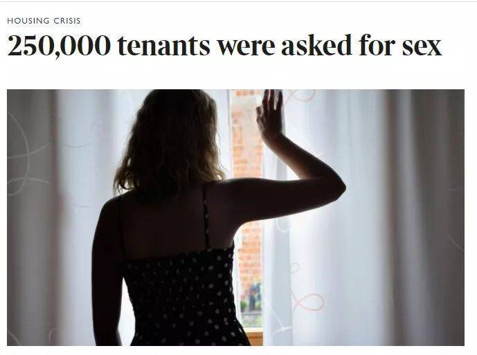 据英国《泰晤士报》报道,英国住房慈善组织Shelter数据表明:在过去5年内,至少有25万名女性为了减免房租和房东发生了性关系!