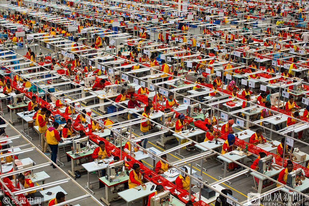 10月15日报道,当地时间8月1日,埃塞俄比亚。埃塞俄比亚首都亚的斯亚贝巴南部郊外,有一座东方工业园,这是中国在埃塞俄比亚的首个国家级境外经贸合作区。园区占地5平方公里,连接着两个60万人口的城镇,目前已经有85家企业入驻,行业涉及纺织、服装、制鞋、钢筋、水泥、制药、汽车组装等,这些企业绝大部分来自中国。来源:视觉中国