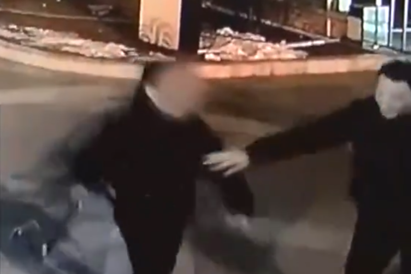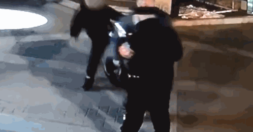女保安12岁的儿子看到妈妈被打,冲上前猛踹男子。