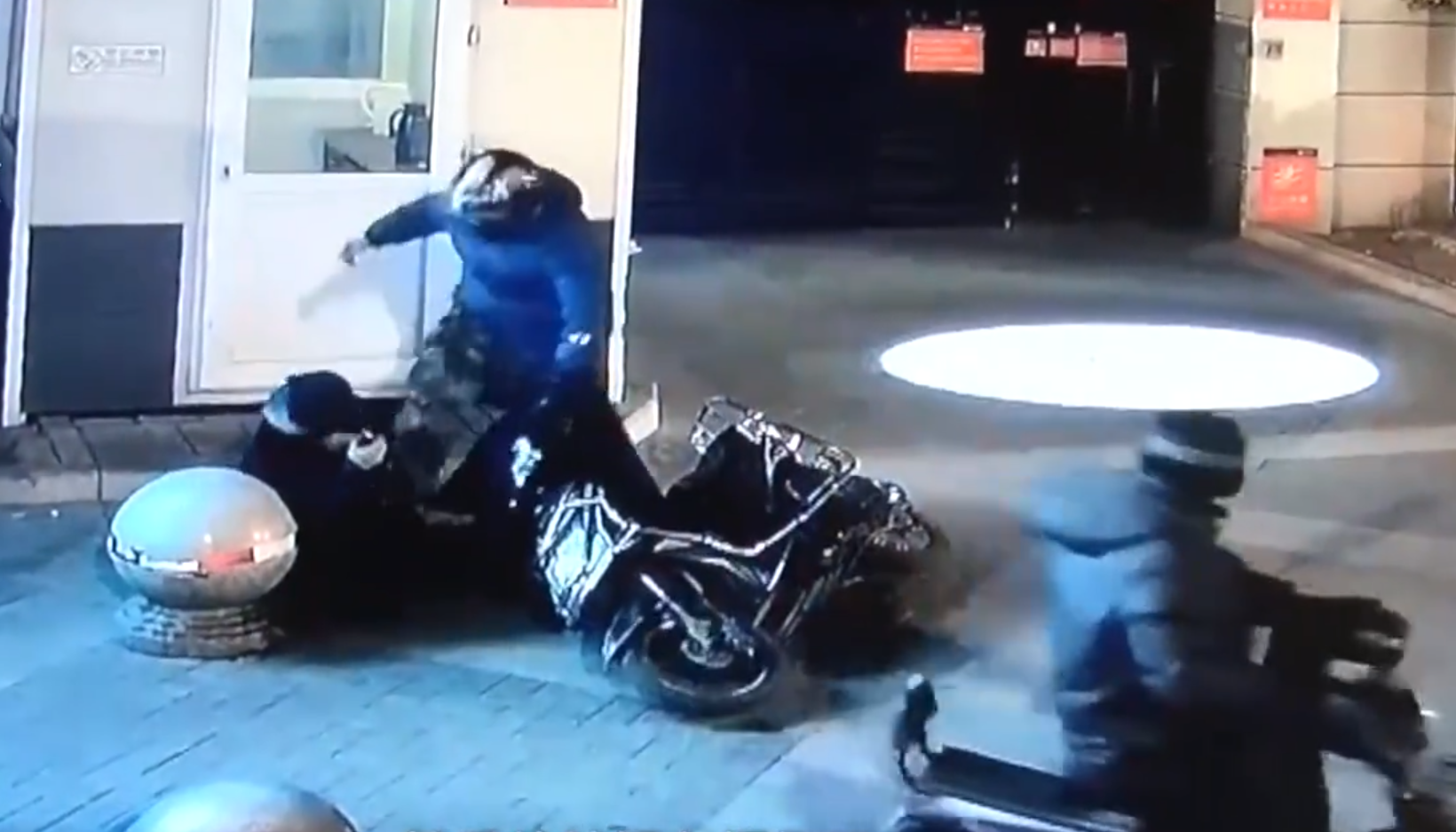 1月11日报道,近日1月6日,辽宁沈阳。一男子在小区门口随意停放电动车影响业主出行,女保安上前劝阻却遭撞倒踢打。来源:梨视频